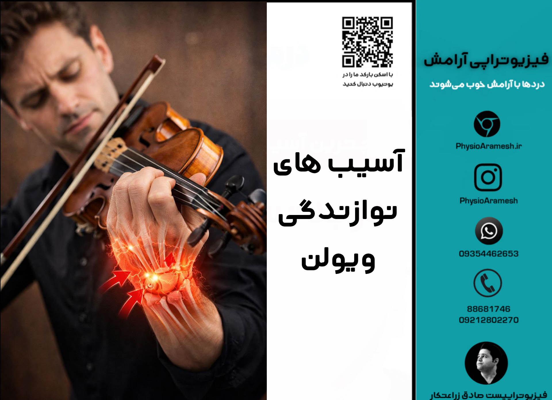 آسیبهای نوازندگی ویولن شامل درد فک، گردن، شانه، مچ دست و بازو هستند که به دلیل وضعیتهای ثابت و حرکات تکرارشونده ایجاد میشوند. فیزیوتراپی تخصصی نوازندگان با ارزیابی دقیق و تمرینات اصلاحی، نقش مؤثری در پیشگیری و درمان این مشکلات دارد.