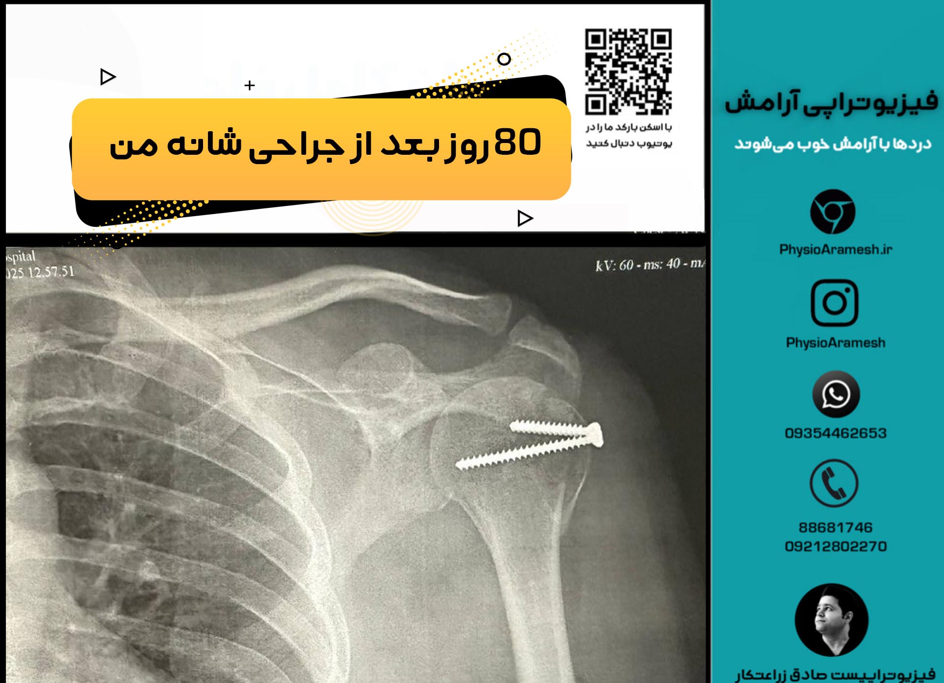 در این مقاله تجربهای واقعی خودم به عنوان یک فیزیوتراپیست از روز هشتادم بعد از جراحی شکستگی توبروزیته بزرگ هومروس و ترمیم تاندون روتاتور کاف همراه با عمل جراحی ORIF ساعد را مرور میکنیم.