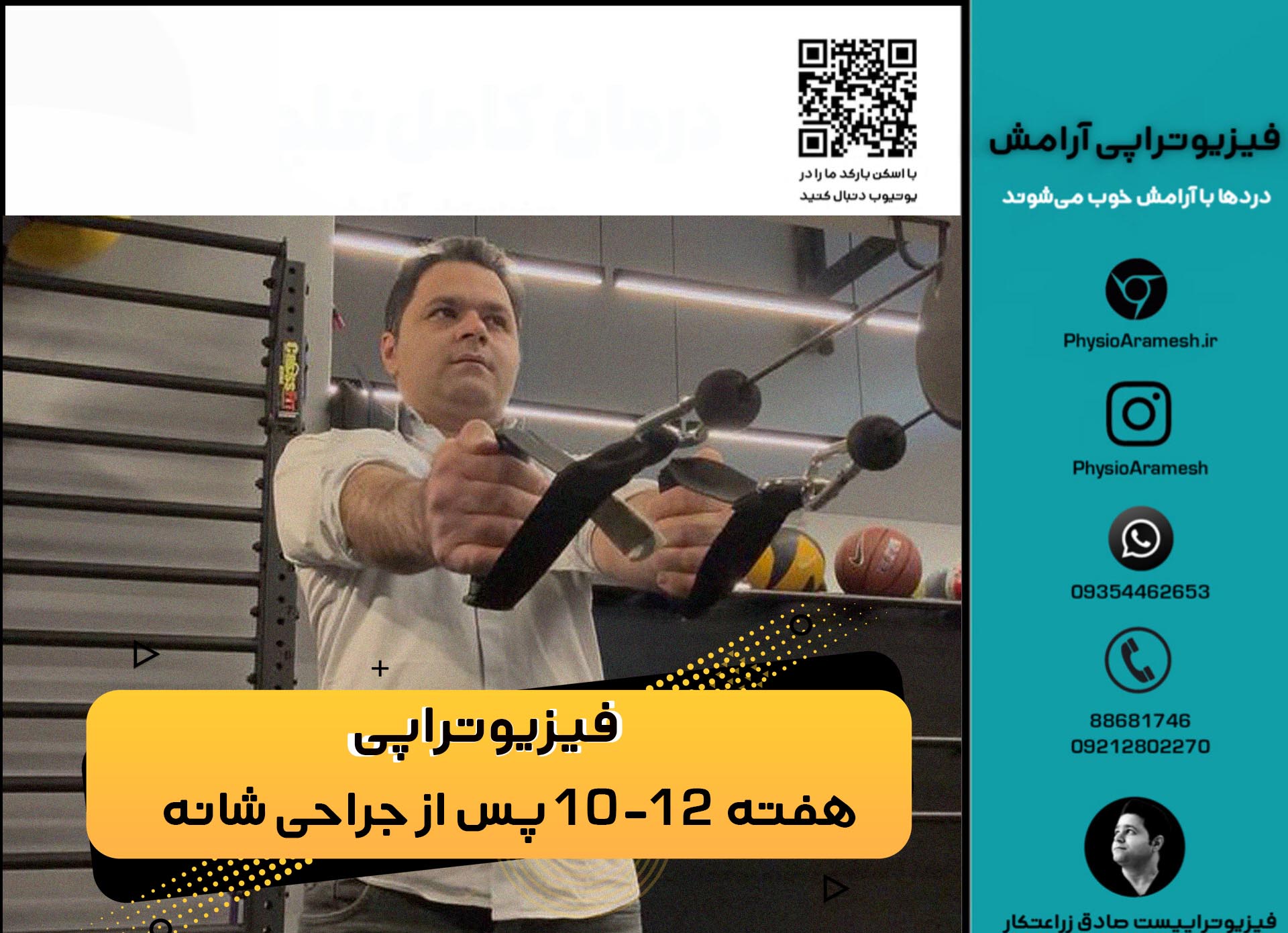 هفتههای ۱۰ تا ۱۲ پس از جراحی شکستگی Greater Tuberosity همراه با ترمیم تاندونهای روتاتور کاف، یکی از مراحل کلیدی در بازتوانی بیماران است. در این دوره، استخوان معمولاً وارد فاز Consolidation و تاندون وارد فاز Remodeling اولیه میشود. بنابراین بیمار میتواند از مرحله حرکات کم شدت و حمایتی به سمت تمرینات فعال کنترلشده و سپس تمرینات مقاومتی سبک حرکت کند. در زمان نوشتن این مقاله 12 هفته از جراحی من میگذرد و سعی میکنم تجربیات واقعی بعد از شکستگی توبروزیته بزرگ استخوان بازو و پارگی تاندون روتاتور کاف شانه خود را به اشتراک بگذارم. در صورتیکه شما هم جراحی مشابهی انجام داده اید میتوانید از طریق تماس با شماره 09212802270 مشاوره رایگان فیزیوتراپی دریافت کنید. در ادامه، یک پروتکل جامع، علمی را ارائه میکنم. کلینیک فیزیوتراپی آرامش در سعادت آباد فیزیوتراپی پس از جراحی مفصل شانه را بصورت کاملا علمی ارائه میکند.